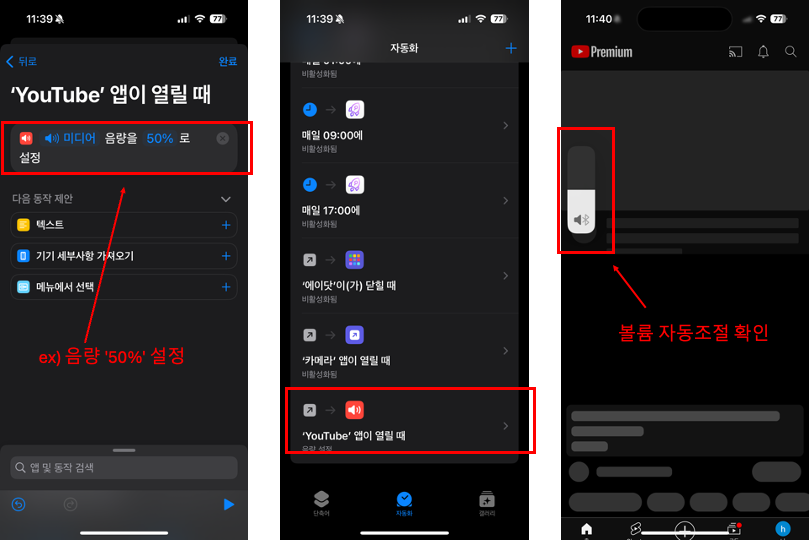저는 'YouTube'를 예를들어 설명드렸지만 '단축어' 앱을 사용하면 다른 앱들도 이렇게 볼륨을 원하는대로 조절이 가능합니다.