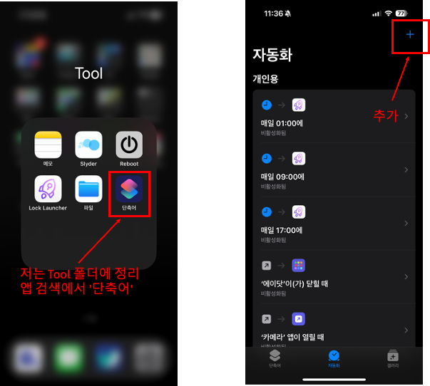 아이폰에서는 정말 '단축어' 기능이 필수인것 같습니다.