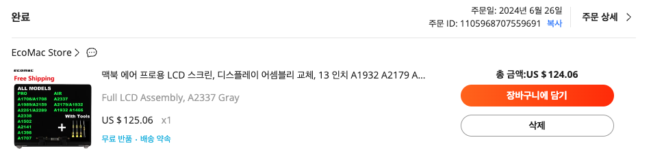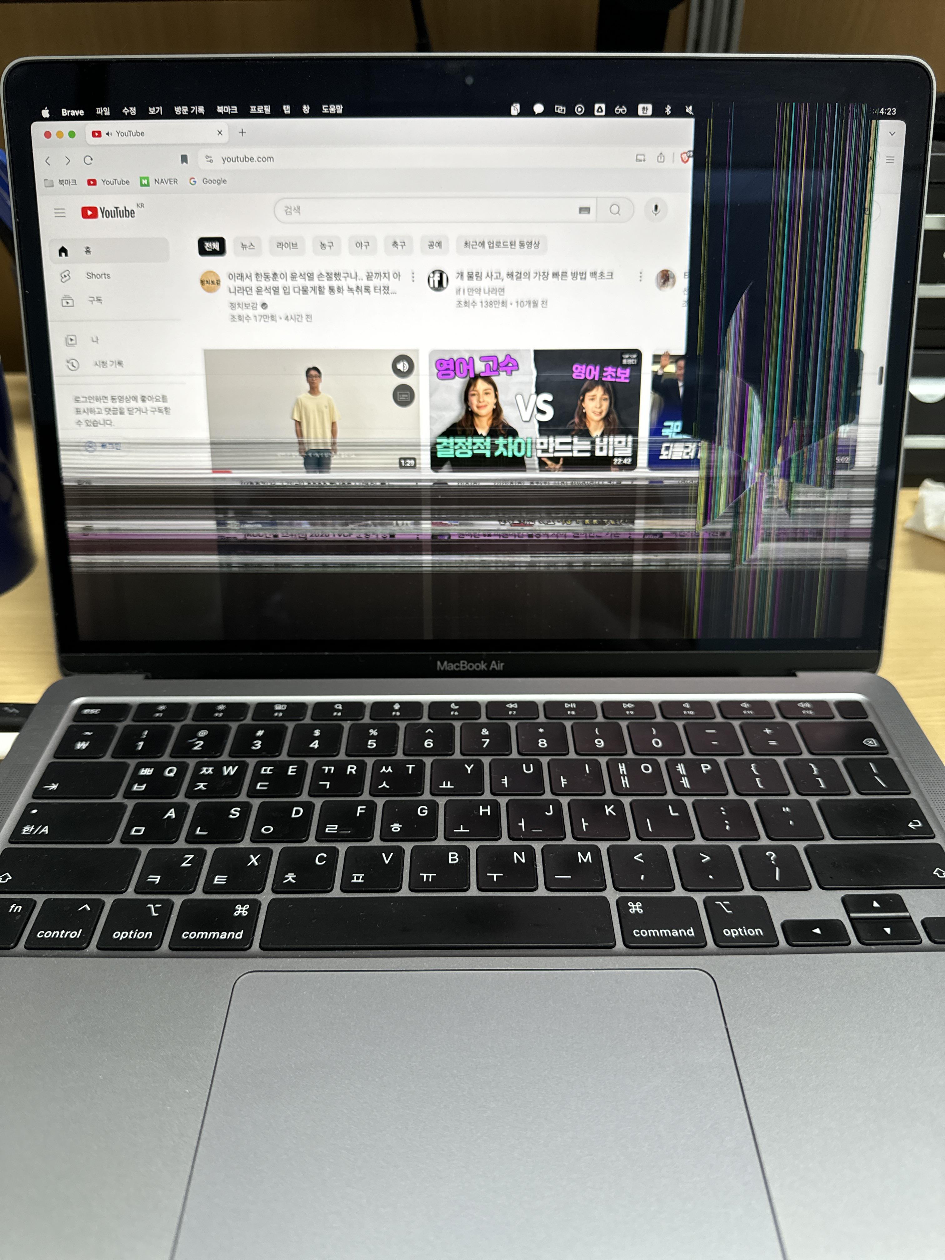 21년에 구매한 2020년 맥북에어 M1 모델 디스플레이가 고장났습니다.