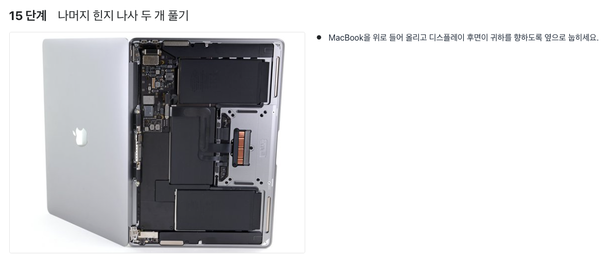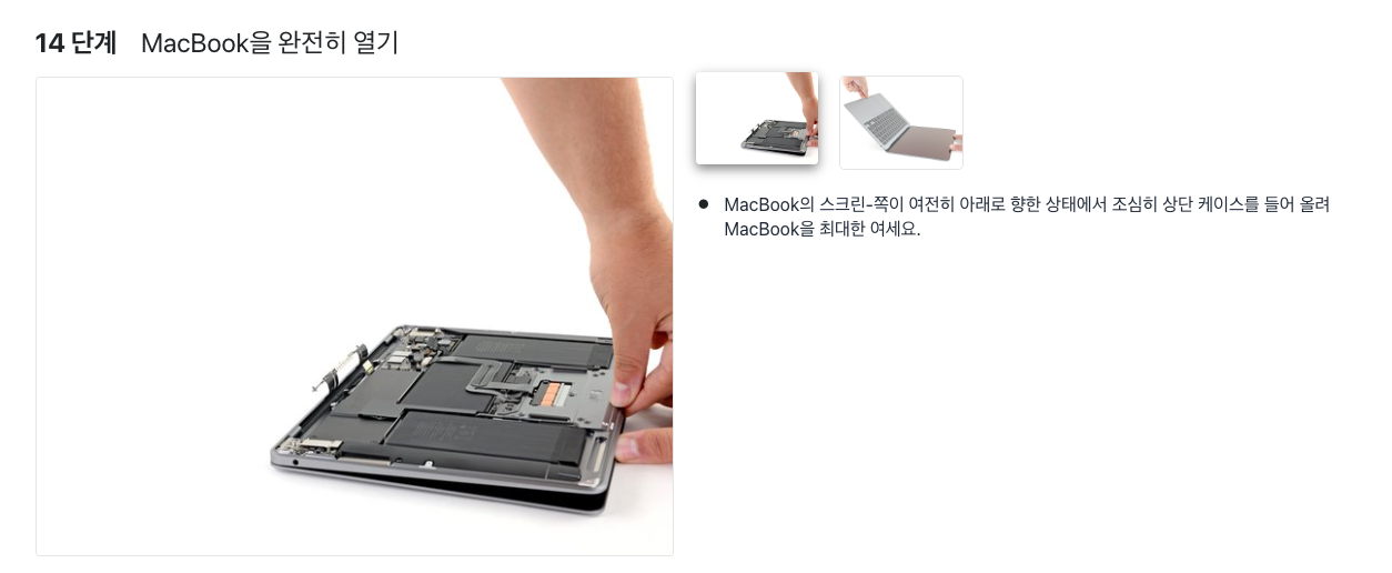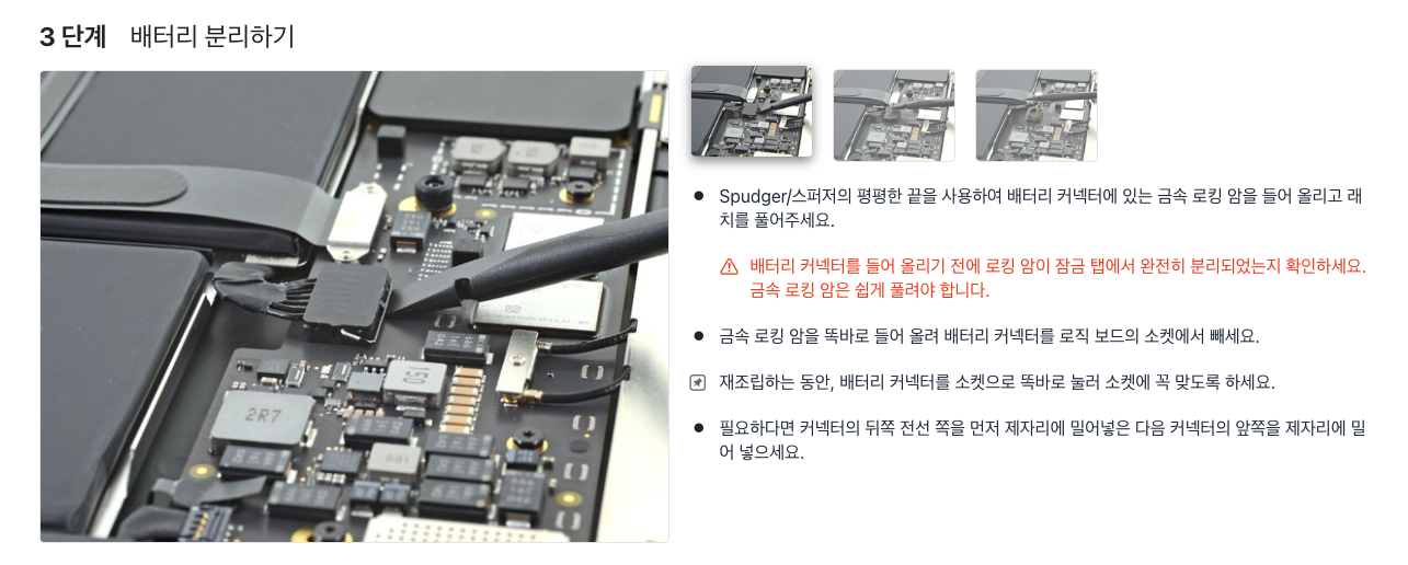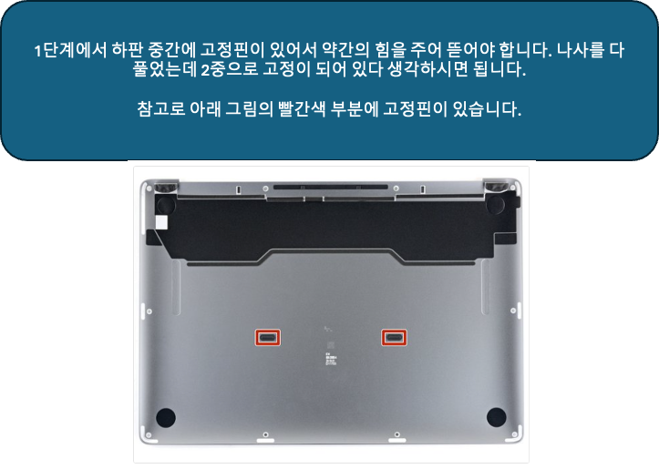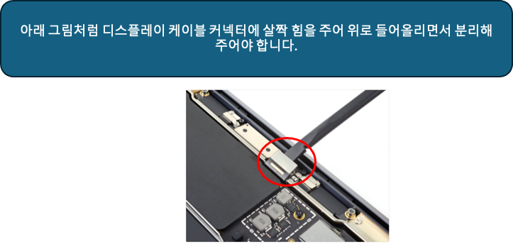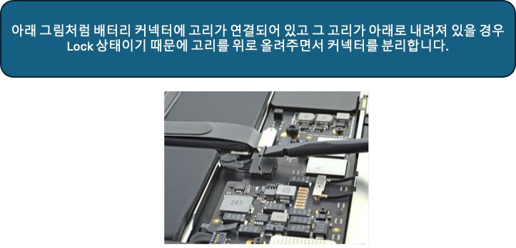 수리하다가 잘못해서 맥북이 On 되는걸 방지하기 위해 배터리를 분리해 줍니다.